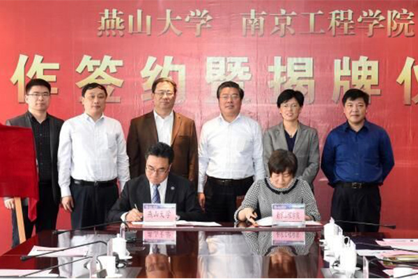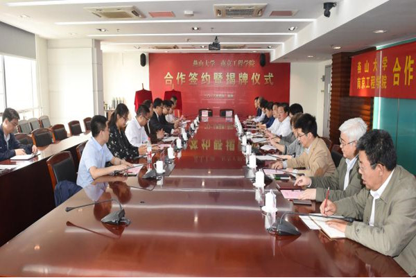 On the morning of the 27th, Liu Hongmin and Kong Xiangdong led the delegation to participate in the signing ceremony of the cooperation between NIT and YSU—the opening ceremony of the YSU-NIT Joint Research Institute-NIT Joint Technology Transfer Center. Shi Guojun, Party Secretary of the NIT, Dean Shi Jinfei, and Deputy Dean Cao Xuehong, and relevant staff attended the ceremony. Miu Xiumei, Deputy Mayor of Nanjing Jiangning District and Wang Ningbang, Deputy Director of Nanjing Jiangning Gaoxinyuan Administrative Committee also attended the ceremony.