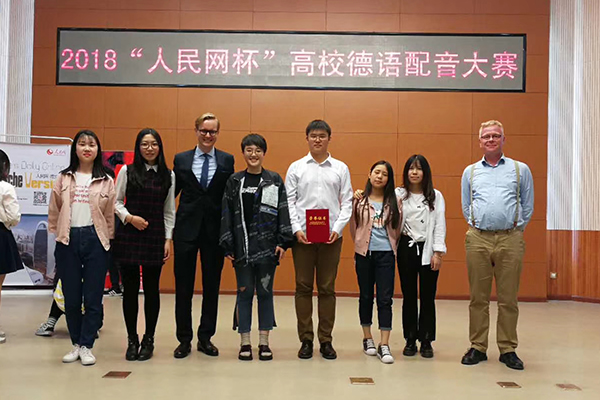 [News from the news center] On the afternoon of May5, 2018 "People Network Cup" national university German dubbing competition officially started at Beijing Foreign Studies University. 20 teams from 20 universities such as Peking University, Tsinghua University, Renmin University, Beijing Foreign Studies University, Nankai University, Zhejiang University, Guangdong University of Foreign Studies and Xi'an International Studies University participated in the competition. The competition consists of 7 awards and a total of 9 teams won the award. YSU team performed well and won the Best Innovation Award.