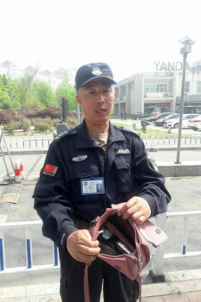 [News from the News Center] At 9:30 on May 13, Sui Xin, an YSU security found a lost bag on the ground at the intersection near entrance gate No. 1 of YSU. By checking, he found there were nearly 6000 RMB in cash, some jewelries and bank cards and related documents in the bag. Soon afterwards, he immediately reported this to the person in charge of the School Safety Office and waited for the owner of the bag on the spot.