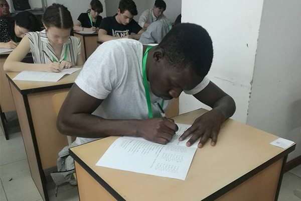Ugandan student Dix at the Chinese character dictation contest