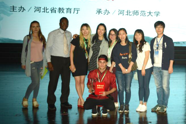 In the Chinese dictation process, after fierce competition Wang Lu, an overseas student from Russia, and Dix, from Uganda, won the third prize. Bai Xue, a Bulgarian student won the second prize. She shared her personal experience in China in the impromptu speech “Studying in Hebei, Dreaming in China” with her fluent Chinese language and excellent performance, which moved the audiences particularly, the judges. In the cultural knowledge competition, Du Di from Turkmenistan eventually won the second prize with his solid traditional Chinese cultural knowledge. In the Chinese Talent Show unit, Russian student Najia won the best singing award with a "Qinghai-Tibet Plateau," and was selected to perform for Hebei TV station.