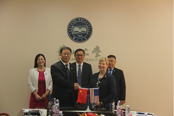 In addition, Liu Hongmin and Ms. Karen Reed, the Vice President of NCSC, signed a cooperation agreement. YSU and NCSC have a very good foundation for exchanges and dynamic interactions. The agreement signed marks the substantive cooperation in joint scientific research and exchanges of teachers and students is on the track.