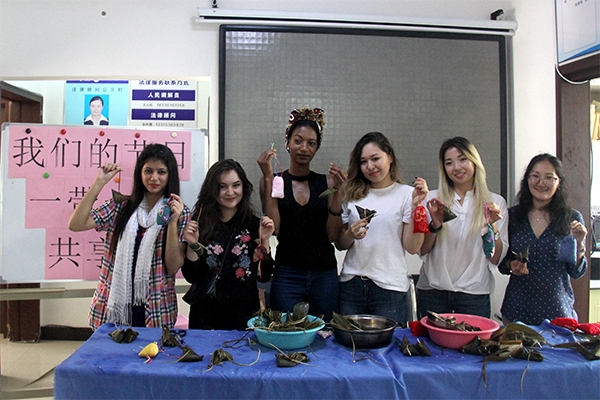 Zhang Li, Deputy Director of the community, introduced the origins of the Dragon Boat Festival customs for students, and invited the community residents to teach students to make Zongzi. The students followed the residents from folding leaves, filling rice and stuffing, andwrapping with stringsto the final form. Finally these students all made their satisfying Zongzi. Afterwards, they also learned to make sachets under the guidance of Zhang Li and community residents. Both the international students and residents enjoy this activity, which forge links of friendship between them.