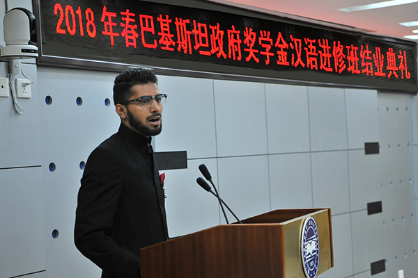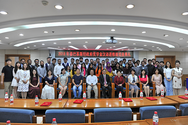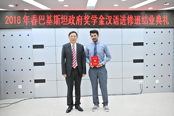 Zhang Fucheng awarded the Completion Certificates for the first batch of 39 Pakistani government scholarship Chinese language students and issued honorary certificates to 9 outstanding students.