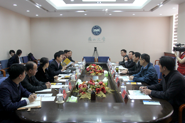 [News from the News Center] On the morning of October 10, Shen Lin, the President ofChangzhou Vocational Institute of Mechatronic Technology, led a delegation to visit YSU. The symposium was held at the first reception room of the Century Building at 9:00. The YSU Standing Committee of the Party Committee, Wang Baocheng, together with the heads from the Graduate School, the Student Affairs Office, the Admissions and Employment Division, the School of Information Science and Engineering, Liren College and the Science and Technology Research Institute attended the meeting.