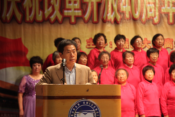 Wang Baocheng delivered a speech before the performance. On behalf of YSU, he extended a cordial greeting to the senior teachers. He points out that the elder teachers have always remained faithful to the Party. This year marks the 40thanniversary of the reform and opening up, the 120thanniversary of Qinhuangdao port opening, and the 60thanniversary of the independent operation of Yanshan University. Through various activities, they strive to add positive energy to the cause of the Party and the people in their practice with original intention. Wang expresses his heartfelt gratitude to the elder leaders who have worked hard to the YSU establishment, to the elder faculty and staff who have worked tirelessly to educate outstanding talents and to promote YSU development. He stressed that senior faculty and staff has been the concern of YSU and related measures and arrangements is underway to ensure their political treatment and material amenities. It is hoped that they will continue to care for YSU development and construction, and work together to create a bright future for YSU.