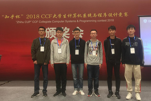 [News from the News Center] “Zhihu Cup” 2018 CCF Collegiate Computer Systems & Programming Contest (CCSP) and awards ceremony was held in Hangzhou from October 25-26. The contest wassponsoredby the Chinese Computer Federation (CCF), and organized by Hangzhou Dianzi University. A total of 474 college students from 62 universities including Tsinghua University, Harbin Institute of Technology, and Yanshan University gathered for 12 hours on-site programming contest. Eventually, Song Lidong and Wu Yue from the School of Information and Engineering won the silver medal, and Zhang Ruiyuan and Yang Yi won the bronze medal.