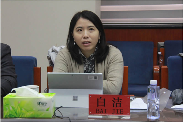 Bai Jie speaks at the meeting.