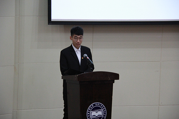The presidents of the student unions from the 14 schools gave presentations with PPT on their work in 2018. The School of Mechanical Engineering gave their reports through reflecting the activities they had and looking forward to the prospect of the school. Through the model selection he demonstrated the role of the student unionin the construction of study style and leading trend of thoughts. The School of Humanities and Law has elaborated on organizational construction, theoretical study, student work, and characteristic positions. At the end, the sand art with humanism was even more impressive. School of Economics and Management, keeping close to the spirit of the 19thNational Congress of the Communist Party of China, displayed the themed activities, and they focused on the important role of the “Integrity Station” in serving students.The School of Electrical Engineering and the School of Information Science and Engineeringtook advantage of their majors to conductvarious activities, develop platforms of WeChat, QQ and Weibo to realize online and offline double linkage, continuously carry out internal system reform and realize their own development; the presidents of student union from each school,with clear ideas and fluent speech, reviewed and summarized the work of the student union. After the judges scored on the spot, the School of Mechanical Engineering ranked the first with a high score of 94.60, and the School of Humanities and Law and the School of Economics and Management ranked second and third respectively.
