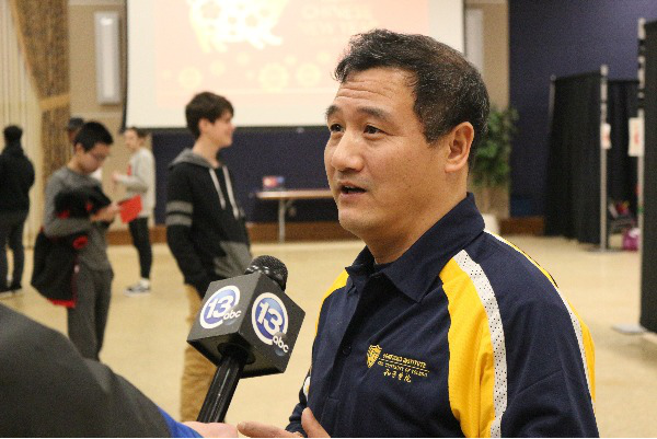 Prof. Zheng Zhanguo, Chinese affairs director, is interviewed by abc13.