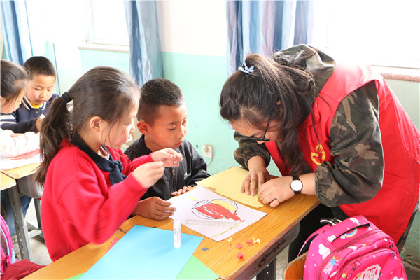 At 1:00 pm, the volunteers arrived at Heishanyao Primary School. They were divided into 6 groups and organized different activities around 6 topics. The first group gave presentation of the traditional Chinese culture for the students in Grade One and helped them better understand the Chinese traditional culture in games; the second group introduced the garbage classification for the children and helped them to knowthat “garbage can also be resources if classified and treated well”; the third group volunteers organized the children in Grade Three to make kite in groups, and taught them the importance of cooperation; the fourth group introduced the customs and characteristics of each ethnic group to the children in Grade Four, which broadened their horizons of customs in each place; the fifth group told stories about mother’s love to the children, reminding them to be grateful constantly. At 3:00 pm, after the activities ended, the volunteers took photos with the children.