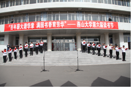 [News from the News Center] On the morning of April 21, the launching ceremony of the 6th Reading Festival of Yanshan University was held in front of the library. Vice President of Yanshan University Huang Sheng, Secretary of the Youth League Committee Li Xida, Wang Hongbin, the Dean of Liren College and Qu Xiaoyang, Library Party Secretary were invited to attend the launching ceremony, which was hosted by Wang Yichun, Deputy Director of the library.