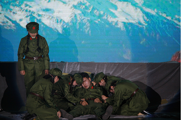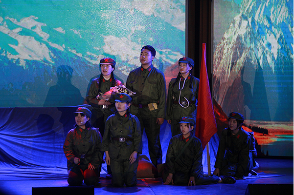 The drama “I am waiting for you in heaven” of “The Death of the Yak and the Clerk on the Snow Mountain”, tells the story of the transportation of materials on the snowy plateau in the context of the 50-year span and the People’s Liberation Army’s entry into the Tibetan Plateau. On the way, the head of the group, Ou Zhanjun, the female soldier Bai Xuemei, the doctor Xin Ming, the captain Su Yuying and others tried their best to protect the PLA materials. After nearly one and a half months of rehearsal, the members of the troupe created a tragic and touching story after continuous rehearsal. The will and the persistence of the inner faith expressed the praise of the PLA in the form of drama. On the day of the performance, their wonderful performances received praise from the audience.
