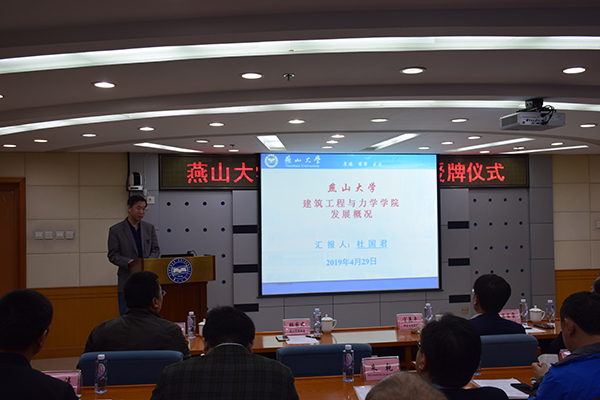 Du Guojun, Dean of School of Civil Engineering and Mechanics, introduced the development of the School, focusing on the history, the characteristics of the disciplines and the plan of each discipline development.