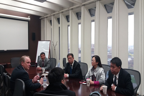 Subsequently, YSU delegation held a work meeting with Professor Peter C. Nelson, Dean of the School of Engineering. Professor Peter welcomed YSU delegation and gave a detailed introduction to the University of Illinois at Chicago. Professor Peter thanked YSU for its strong support for the cooperation projects between the two universities. He fully affirmed the excellent performance of the students who are studying at UIC. He hoped to further develop more feasible communication and cooperation projects based on the existing cooperation projects. Liu Hongmin said that YSU is planning and formulating a new engineering construction strategy, and hoping to strengthenthecooperation with UIC in the areas such as big data, artificial intelligence, and traditional engineering disciplines such as mechanical engineering, materials science, control systems, and chemistry. The cooperation could be realized by some forms such as “2+2” experimental class, the master-doctoral joint program, and joint professor- workshops. On behalf of YSU, Liu Hongmin invited Professor Peter to visit our university to discuss the cooperation plan. Professor Peter accepted the invitation with pleasure.