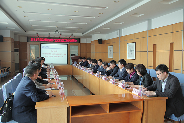 [News from the News Center] On the morning of May 10, the 2019 spring the former MOME-the Seven Universities Employment Alliance Work Exchange Seminar was held in our university. The leaders and directors of Employment departments from the full league member universities:Xi’an University of Technology, Henan University of Science and Technology, Taiyuan University of Science and Technology, Shenyang University of Technology, Harbin University of Science and Technology, Yanshan Univeristy, andother alliance observer universities:Lanzhou University of Technology, Jiangsu University, and the University of Shanghai for Science and Technology attended the seminar.Zhao Xianfeng,Secretary of the CPC Yanshan University Committee, Zhao Dingxuan,Standing Committee Memberof the CPC YSU Committeeand YSU Vice President, attended the meeting. The meeting was presided over by Yi Junpeng, Secretary General of the Alliance and Director of the Admissions and Employment Division of Henan University of Science and Technology.