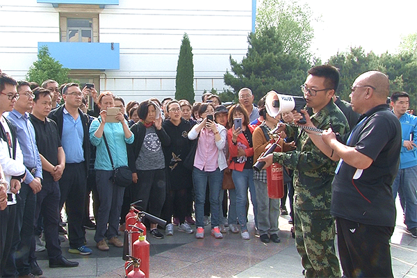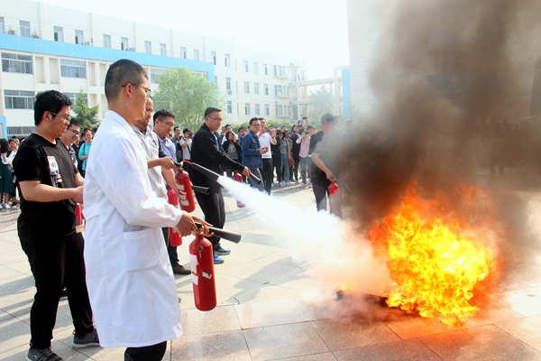 The fire extinguisher operation drill was conducted in the east side square of the Science Building. Ma Wenshuai explained the use of carbon dioxide fire extinguishers on-site, and instructed the teachers and students on the scene to use the fire extinguisher, to master the steps “Hold-lift-point-spray”. Subsequently, the field personnel grouped a fire extinguisher operation drill.
