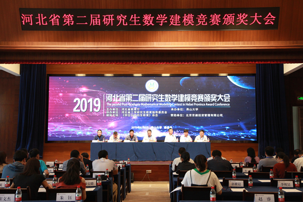 [News from the News Center] On June 5, the awarding conference of the 2nd Graduate Mathematical Modeling Competition of Hebei Province in 2019 was held at YSU. Zhao Qingyun, Secretary General and Office Director of Hebei Provincial People’s Government, Deputy Director Ji Jialin, YSU Vice President Ren Jiadong, Liu Junqi, Editor of the Journal “Academic Degrees and Graduate Education”, and Zhang Guangzhi, the representative from the contest sponsor company Beijing Jindian Investment Management Co., Ltd. Among the 100 representatives of teachers and award-winning graduate students from 46 institutions attended the meeting. The awarding ceremony was hosted by Ji Jialin, Deputy Director of the Provincial Degree Office.