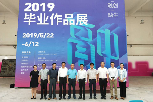 In the exhibition hall of the School of Art and Design, Wang Jialin and his delegation visited the professional exhibition areas carefully. In the design exhibition area, he listened to the staff’s introduction of the product, and learned in detail design concepts and its innovation, which demonstrated the significance of brand upgrading and industrial transformation and upgrading. In the video display area, he watched the fire rescue of the emergency robot, and affirmed the design of the product. He also visited other exhibition areas, including the environmental design, visual communication design, public art, comprehensive painting, sculpture and other exhibition areas, and highly praised the education in our university and students’ creative products.