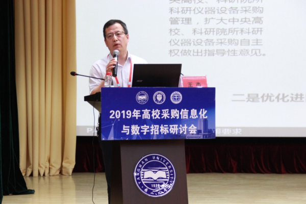 [News from the News Center] On June 13 and 14, the seminar for 2019informationizedprocurementand digital tendering was held at the Student Center, West Campus, which was sponsored by the College Government Procurement Branch ofEducation Accounting Society of ChinaandBeijing Higher Education Research Association of Technical Equipment, and jointly undertaken by YSU, Tianjin University, andChina University of Geosciences in Beijing(CUGB). Yu Lixin, Vice Director of the Central Government Procurement Center (CGPC),Zhang Jianping, Director of CGPCProjectAssessmentOffice, Wang Xiuke,associate researcherof CGPC InformationService, Ma Jianbin, Vice Director of the Government Procurement Center of the Ministry of Education (MOE), Jia Chuan, Vice Director of the No.1 Procurement Office of the MOE Government Procurement Center, Zhao Dingxuan, YSU President, and Chen Guoqiang, YSU Vice President, attended the seminar, as well as the leaders of YSUprocurementteam and schools and leaders from more than 180 universities and colleges nationwide.Besides, over 500representativesfrom China Government ProcurementNews,GovernmentProcurementInformation,China Education Press, and other media were present at the meeting.The seminar was presided over by Yan Shuting, Director of YSU Office of Laboratory and Assets Management.