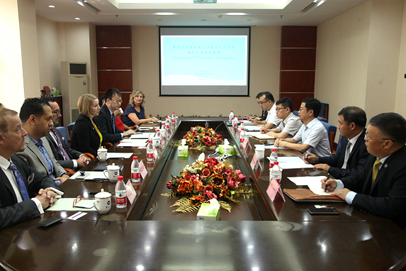 [News from the News Center] On the morning, July 11, Zhao Xianfeng meets delegation from theConfucius Institute at the University of Toledo (UT), USA, guided by Sara Clark, Director of International Affairs Office of the Institute. Chen Guoqiang, YSU Vice President attended the meeting among other directors from YSU International Cooperation Division and School of Arts and Design.