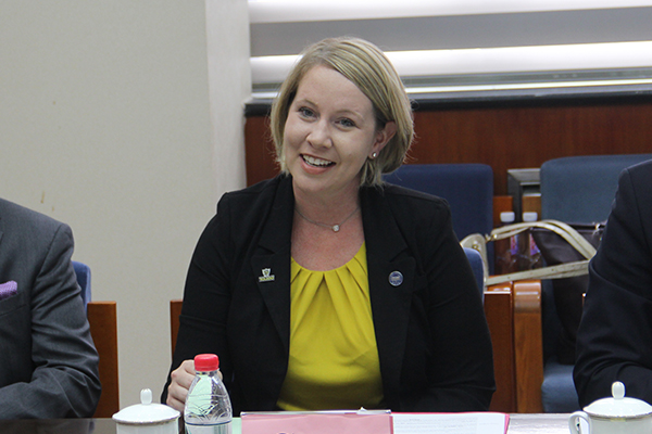 Sara Clark expressed her gratitude to Zhao Xianfeng and Chen Guoqiang for their warm welcome. She said that the UT has always attached great importance to the friendly relationship with YSU and is willing to continue to run well the Confucius Institute. In the past ten years, the Confucius Institute has developed a lot with the support of YSU and played a very good role in the development of many cooperative projects. She fully affirmed the work of directors of the Chinese affairs and Chinese teacher teamfrom YSUand thanked YSU for its support. She said that the Confucius Institute is trying to promote the exchange of mutual visits and scientific research cooperation of the professors between thetwo universities, establishingthe joint training program for graduate students, selecting more excellent English teachers to YSU and jointly buildingaoverseas practice basefor graduate studentsin international education of Chinese. Sara Clark,on behalf of President Gaber,also invited the YSU delegation to visit the UT to attend the 10thanniversary of the Confucius Institute.