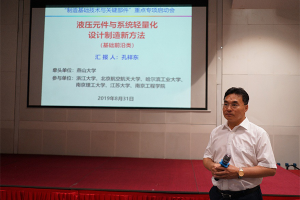 The project “New Method for Lightweight Design and Manufacturing of Hydraulic Components and Systems” belongs to the national key R&D plan “Making basic technology and key components”, and is presided over by Prof. Kong Xiangdong from the School of Mechanical Engineering of Yanshan University, with a total funding of 13.48 million yuan. The project aims to reduce the weight of the mobile equipment hydraulic system. Through the weight reduction of hydraulic oil source, integrated actuator, hydraulic cylinder, fuel tank and integrated unit, a new method for lightweight design and manufacture of hydraulic components and systems is formed. The successful convening of the kickoff meeting marked the successful implementation of the implementation plan for the project and officially entered the implementation phase.