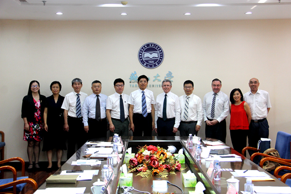 [News from the News Center] On the morning, Sept. 3, Zhao Dingxuan, YSU President, met the delegation from Curtin University, Australia, with John Cordery, Provost of Curtin University, as the leader, at the first reception room, the Century Building. Other leaders also attended the meeting, including Chen Guoqiang, YSU Vice President and those from International Cooperation Division, School of Electrical Engineering, and School of Economics and Management.