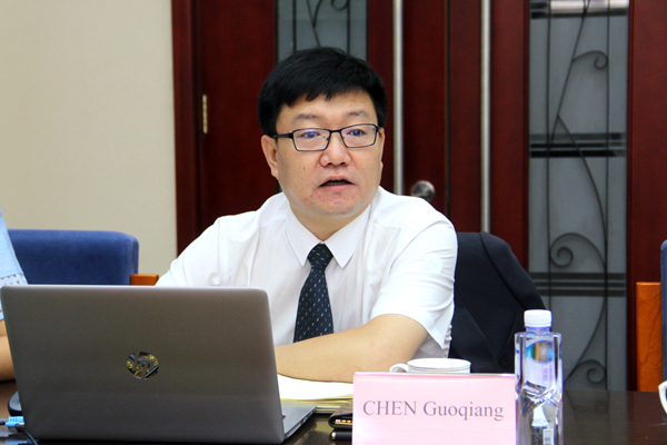 Chen Guoqiang speaks at the meeting.