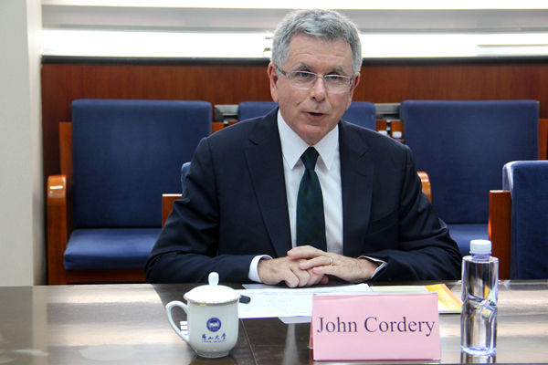 John Cordery expressed his gratitude to Zhao Dingxuan. He said that YSU is the most important partner of Curtin University in China. Curtin University is proudof the outstanding graduates jointly trained by the two universities. Since YSU has admirableachievements in teaching and research, Curtin University is willing to further promote exchanges and cooperation on the “2+2” inter-school project, two-way joint training of doctoral students, and scientific research based on thetwo existing Sino-foreign cooperative education projects and the exchange of teachers and students. He congratulated YSU on its upcoming 100thanniversary and sincerely invited Zhao Dingxuan and his delegation to visit Curtin University. President Zhao was pleased to accept the invitation and express his gratitude.