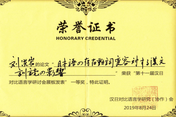 The seminar consisted of academic salons, sub-disciplinary symposium, doctoral forums and report symposium. More than 100 domestic and foreign experts and scholars had discussions on some hot topics related to Japanese linguistics at the conference. Liu Hongyan, Japanese language teacher Liu Hongyan won the First Prize of the Poster Paper in the seminar, which is a strong affirmation for his research.