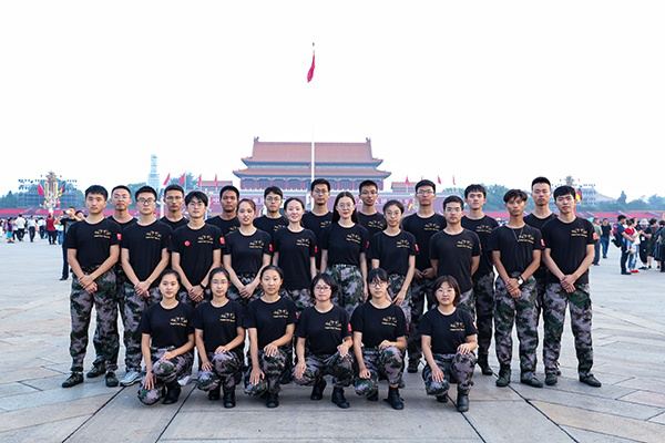 At 11pm, in the middle of the night, members of the Flag Guard arrived at the Beijing Railway Station. The whole team walked to Tiananmen Square. The team members were excited to wait for the flag-raising ceremony to be held in the waiting area. At 4:55am, the members of the Flag Guard team dressed in uniform orderly entered the Tiananmen Square viewing platform to welcome the beginning of the flag-raising ceremony. At 5:40am, the flag-raisers of the Combined Honor Guard of the People’sLiberation Armytook a powerful step to guard the bright national flag for a solemn flag-raising ceremony. Along with the music of the “March of the Volunteers”, the members of the Flag Guards all paid attention to the national flag; accompanied by the national flag slowly rising, the players sang the national anthem and paid tribute to the motherland.