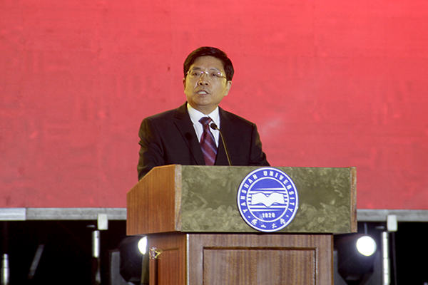 Zhao Xianfeng,YSU Party Secretary, unveiled the clock for anniversary.