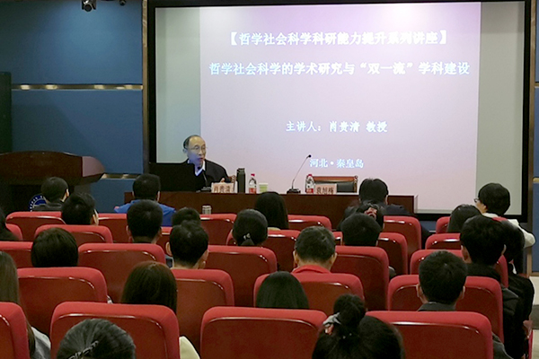 [News from the News Center] On October 12, the first lecture of the series of academic activities for the promotion of the study of philosophy and social sciences by the Department of Social Sciences of YSU was held in Conference Room 217 of the building of the School of Humanities and Law. The theme of this lecture was “Scientific Research in Philosophy and Social Sciences” and discipline construction of the “Double-first Class” university, and specially invited Professor Xiao Guiqing, Associate Dean of the School of Marxism at Tsinghua University to deliver a speech. The lecture was hosted by Professor Yuan Xumei, Director of the Department of Social Sciences. More than 100 teachers and graduate students from 6 schools attended the conference.
