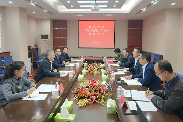 Ren Jiadong welcomed the delegation led by Li Xuchun, Vice President of Shijiazhuang Tiedao University, and briefly introduced the development status of YSU in recent years, and the preparations for the celebration of anniversary, construction of alumni association, information construction, and bus reform.