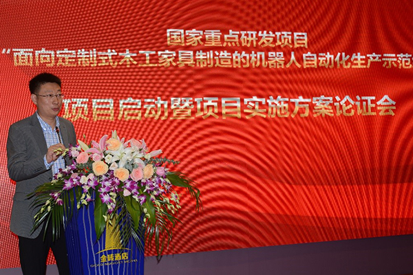 [News from the News Center] On October 14, the National Key R&D Program “Robot Automated Production Demonstration Line for Customized Woodwork Furniture Manufacturing” with YSU Prof. Hua Changchun as the Principal Investigator (PI) was held in Hai’an, Jiangsu Province. Wang Desong, YSU Vice President, Gu Guobiao, Secretary of Hai’an Municipal Party Committee, Deputy Secretary of the Municipal Party Committee, Mayor Yu Lizhong, key experts of the project, the experts for the Feasibility study, PI, and key members of the participating units attended the kick-off meeting.