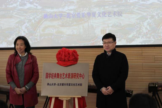 Chen Guoqiang, member of the Standing Committee of YSU Committeeof CPC and YSU Vice President, Tong Xin, a famous TV director, and XieChunfeng, Director of the Center for Moral Education Research of Beijing Academy of Educational Sciences, attended the ceremony as well as leaders, teachers and students of the School of Arts and Design. The ceremony was presided over by Zhang Zhuyan, Director of the Center for Classical Chinese Stage PerformanceResearchand Deputy Dean of the School of Arts and Design.