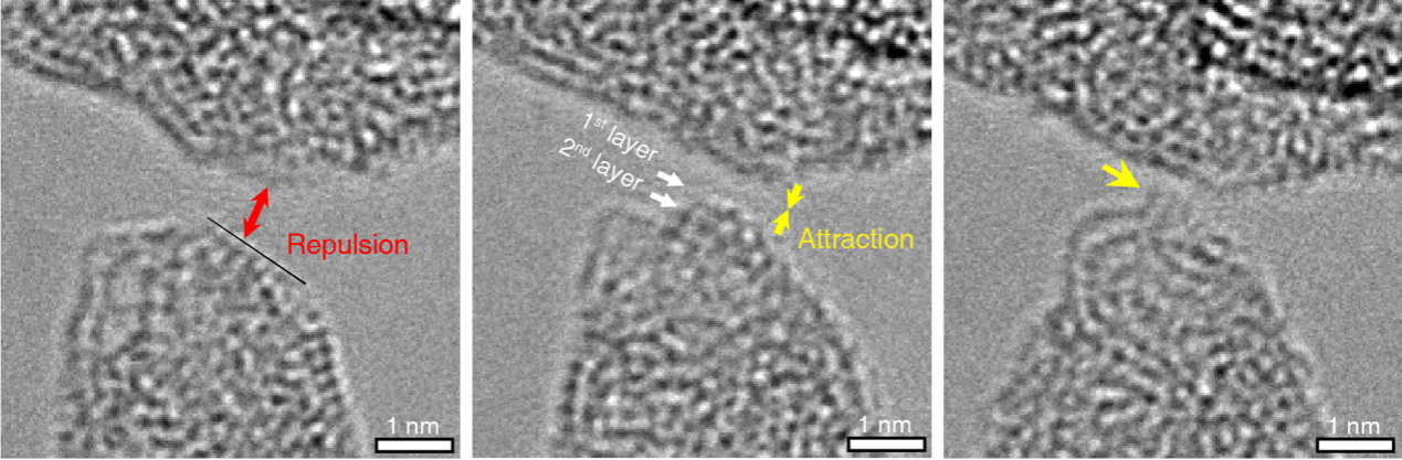 The research teams from YSU and Beihang University conducted in-depth studies on the self-healing behavior of cracks in nanotwinned diamond composite materials. They employed in-situ scanning electron microscopy and transmission electron microscopy mechanical testing methods to systematically characterize the self-healing behavior of nanotwinned diamond composite materials, ranging from mesoscale to microscale and down to atomic scale. Comparative experiments with single-crystal diamonds were also conducted. The research findings indicate that, in the absence of external pressure, nanotwinned diamond composite materials that have completely fractured at room temperature exhibit remarkable crack self-healing capabilities. Their self-healing efficiency is approximately 34%, significantly higher than that of single-crystal diamond, which is 6.7% (Fig.1). Atomic-resolution in-situ observations revealed that nanotwinned composite materials formed an amorphous carbon structure with sp2 and sp3 hybridized carbon atoms on the fractured surfaces (Fig.2). These carbon atoms re-bonded upon contact, thereby achieving the material's self-healing (Fig.3).