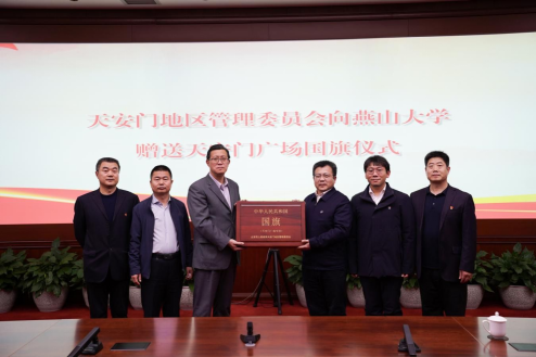 The Administration of Tian’anmen Area presents a national flag to YSU